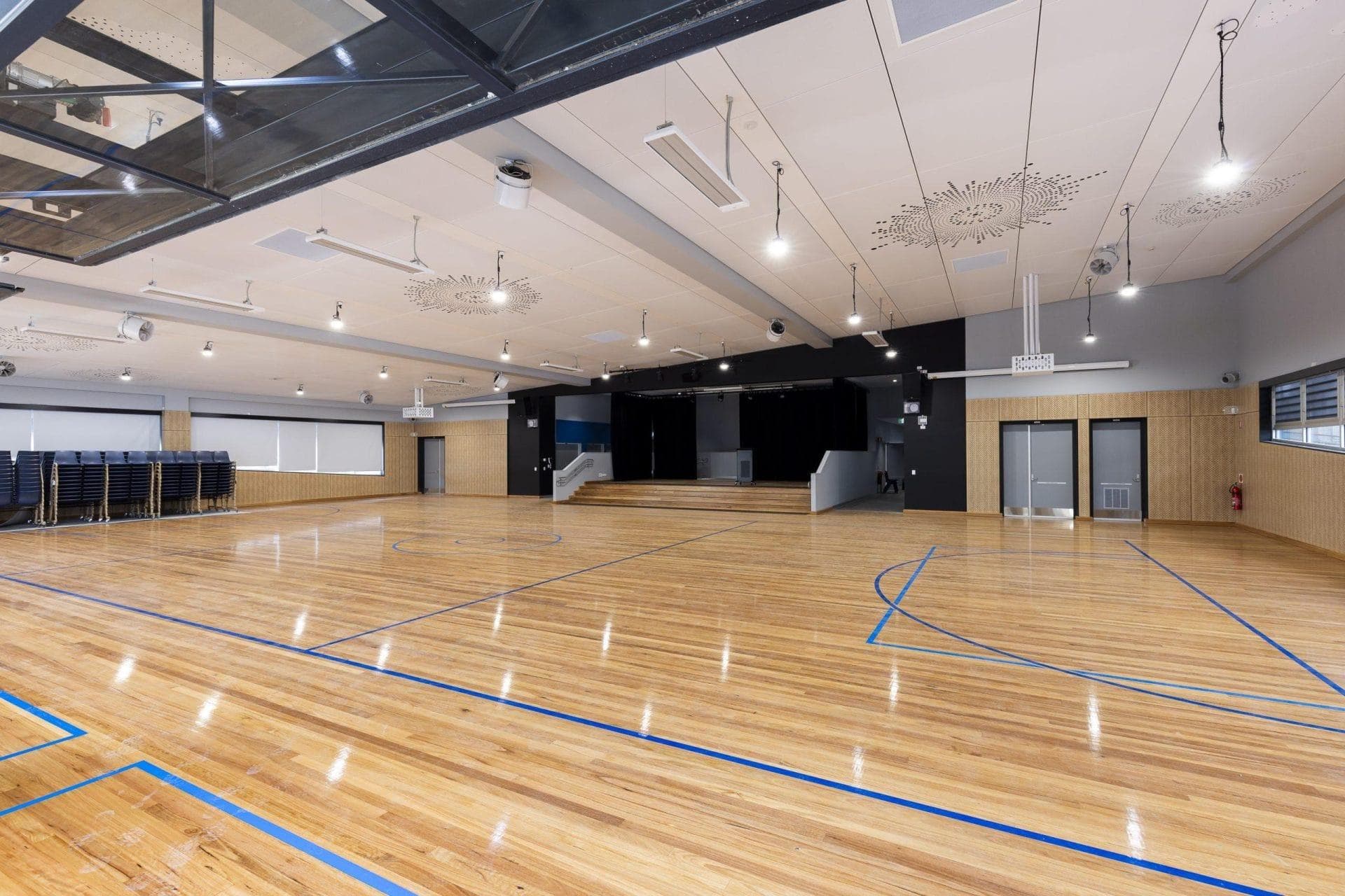 At the heart of the project is a large, multi-functional hall that serves as both a school assembly space and basketball court. Extending across internal and external zones, the ceiling design needed to deliver durability, acoustic performance, and visual interest—while also honouring the cultural identity of the local community.