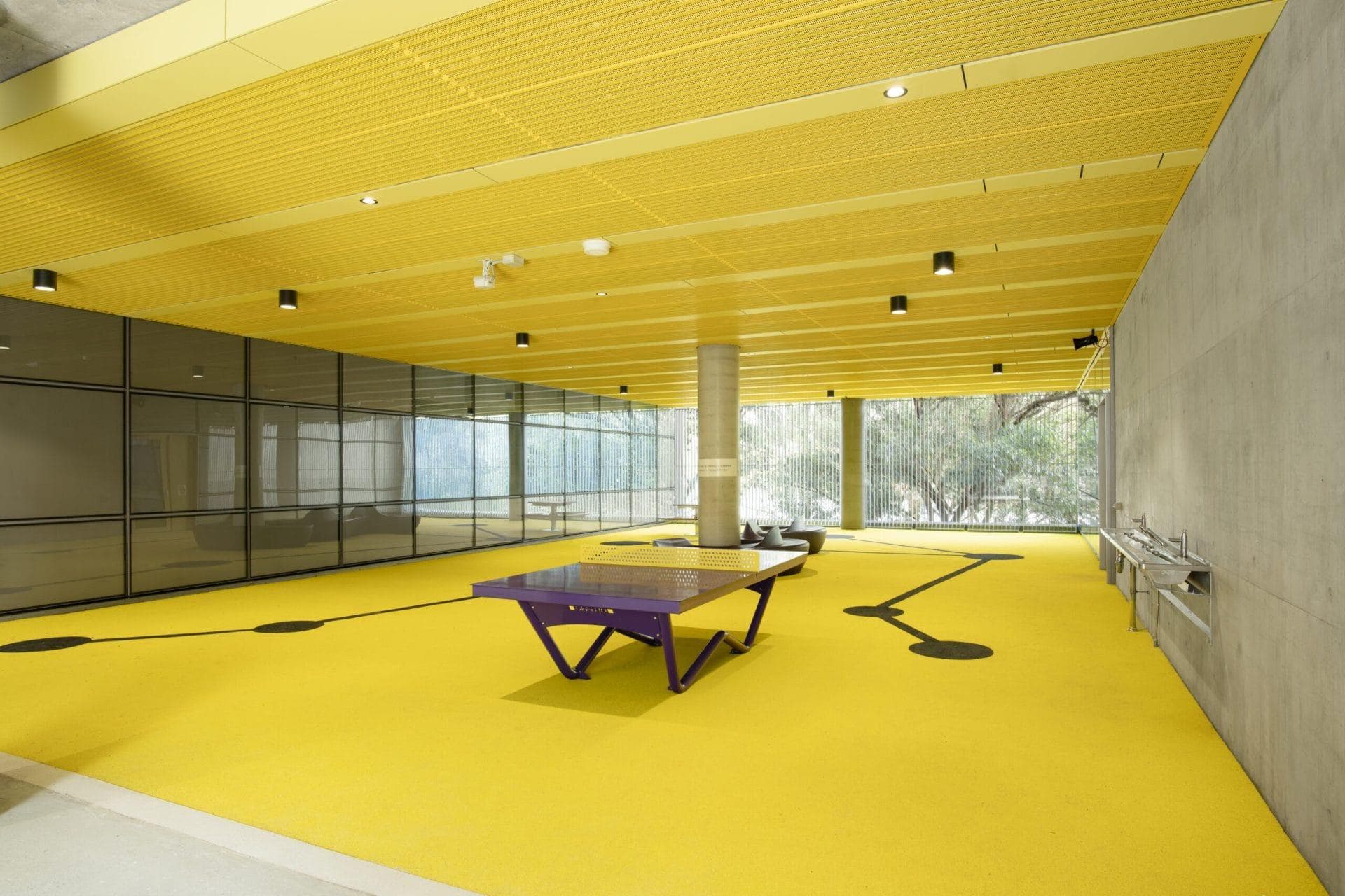 durlum was engaged for the covered outdoor areas (learning & recreational), outdoor passageways, gymnasium and the school hall, as they were able to fulfil Woods Bagot’s design brief. The durlum design team worked closely with Woods Bagot and the interiors contractor X-clusive Group throughout the project lifecycle from the conceptual design, CAD drawings, prototypes through to the shop drawings for final sign off and production.