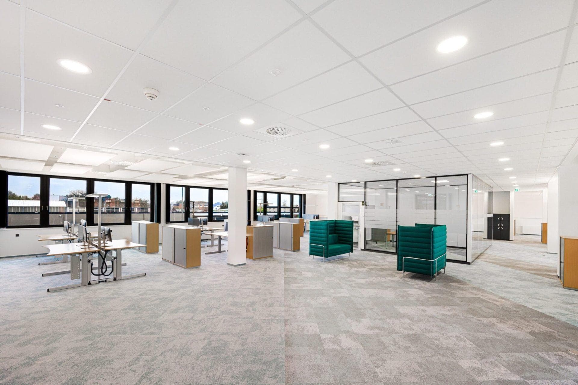 The podium ribbon roofs are clad in ALPOLIC™ panels, paired with a glass roof framed by structural steel. A steel-framed structure crowns the tower, supporting the roof glazing and its distinctive spire.